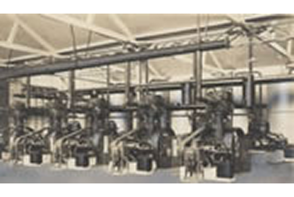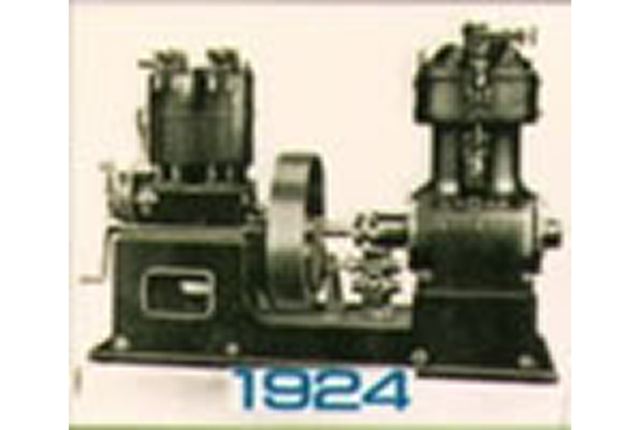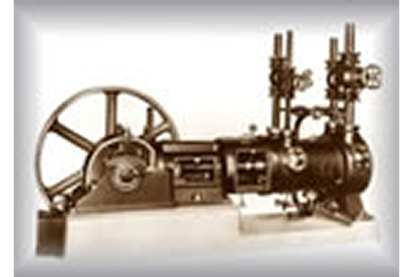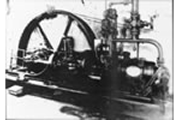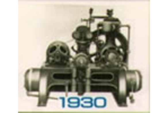 大正10年1921年(大正10年)に当社が製作した「横置き単筒複動式アンモニア圧縮機」