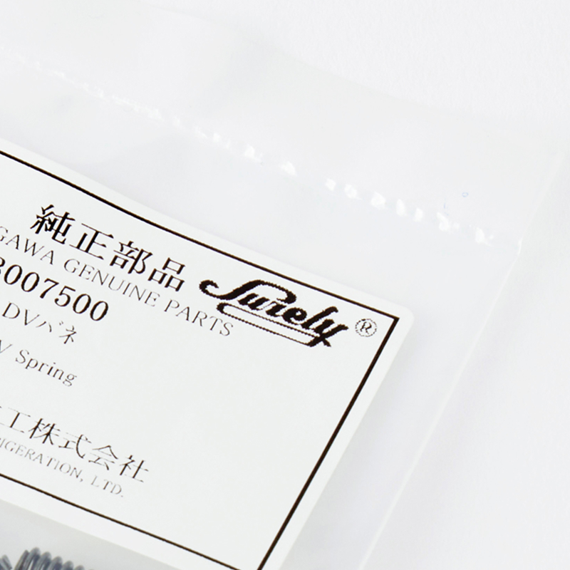 Nearly all parts are packaged in plastic bags labeled “HASEGAWA GENUINE PARTS” along with a parts list tag, and shipped in Hasegawa Tekko cartons. Please note that the use of non-genuine parts will automatically void the warranty for the compressor and we will not be able to respond to any resulting malfunctions.