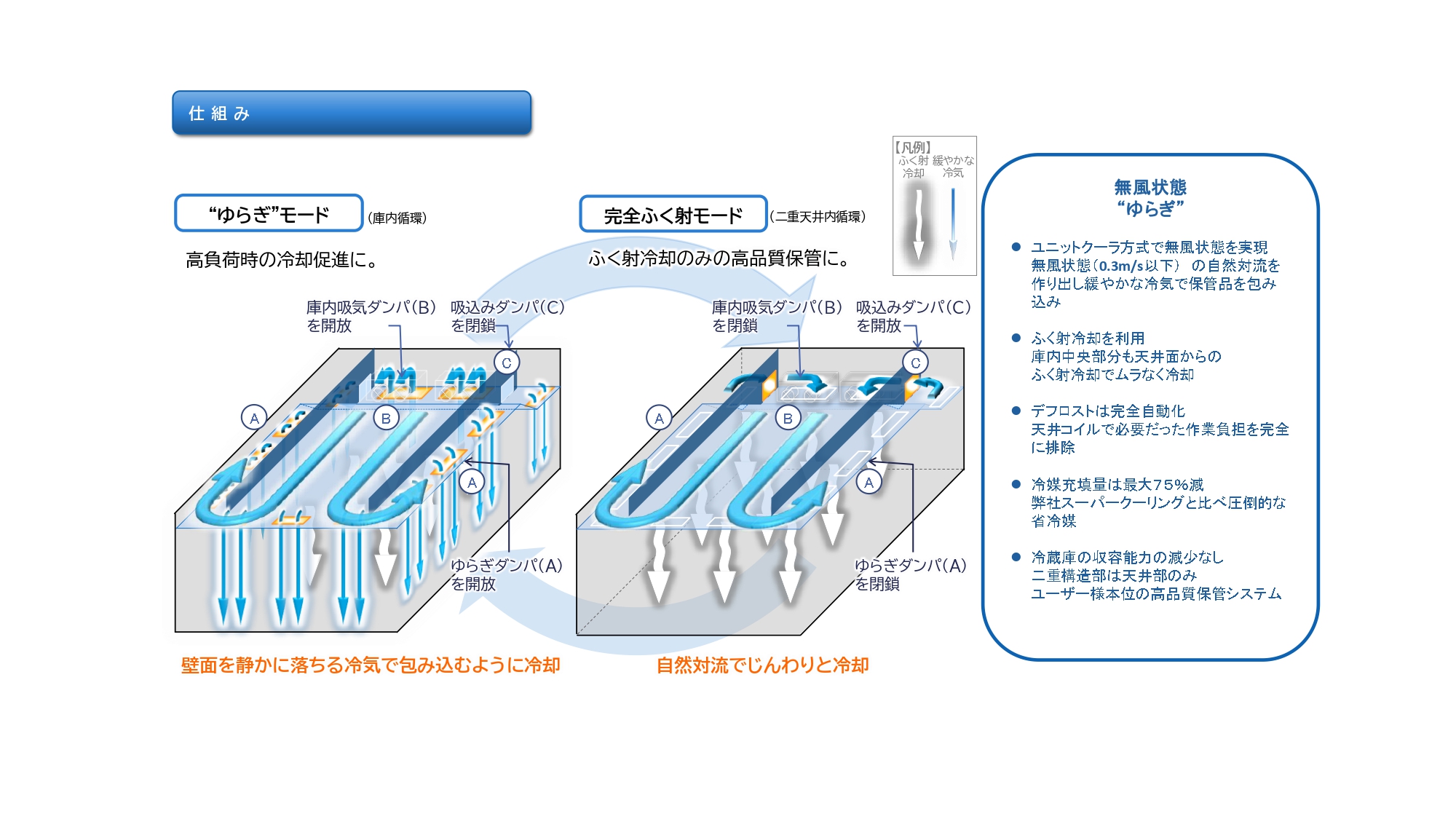 Yuricargo utilizes a double-ceiling structure and natural convection cooling to evenly cool the entire storage space.