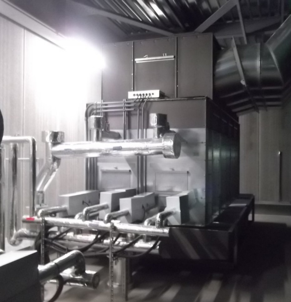The F-class warehouse replaced ten fluorocarbon refrigeration units with NiCRES, a natural-refrigerant cascade system using ammonia (NH₃) and CO₂, consolidating operations into two units.