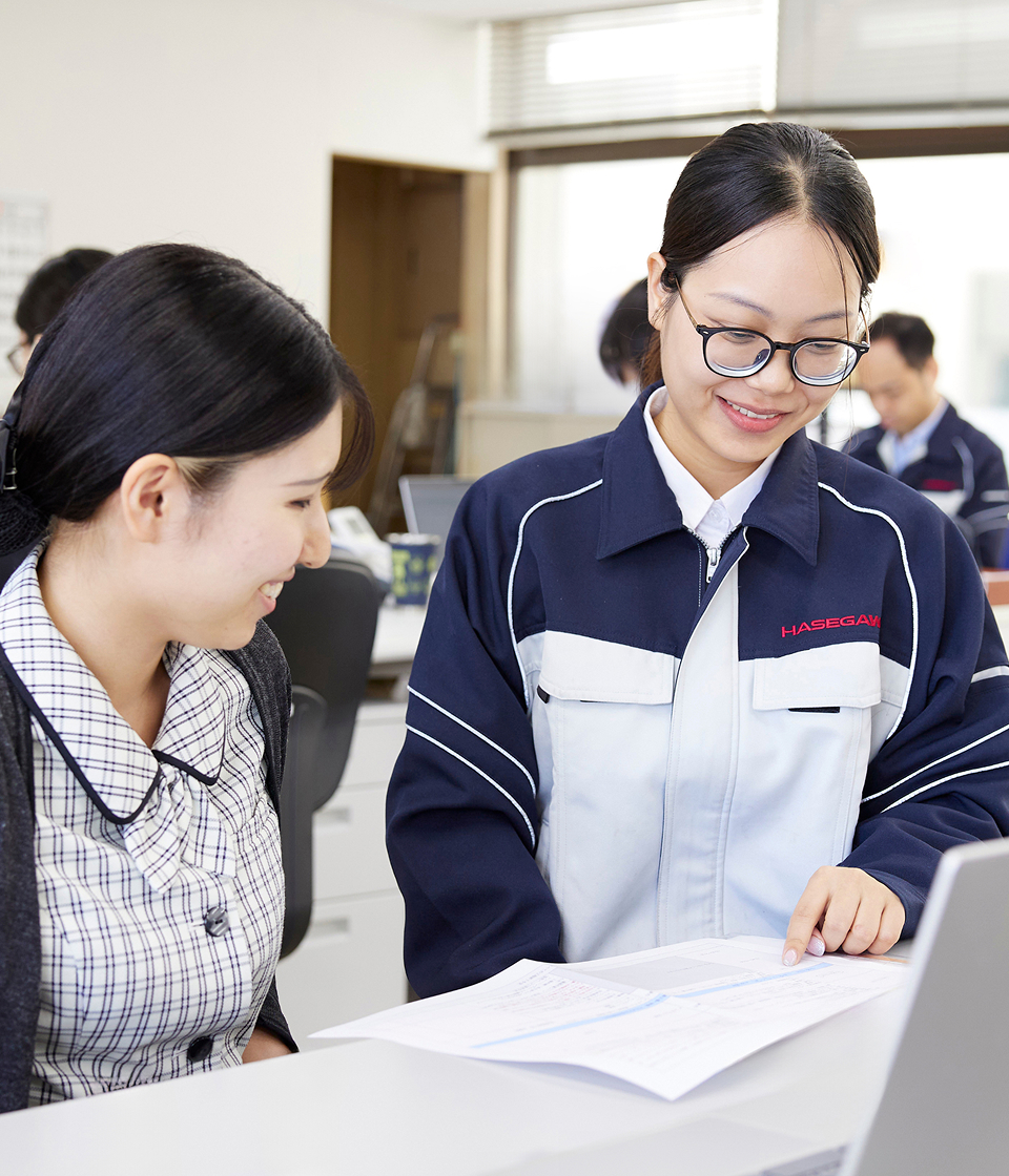 - 大学時代、日本語文化学部で4年間学んでおり、その後日本とベトナムの合弁企業で働いていた中で、日本で働くことに興味を持つようになりました。面接で当社の製品が社会貢献していることを知り、この会社で働きたいと強く思ったのが主な理由です。