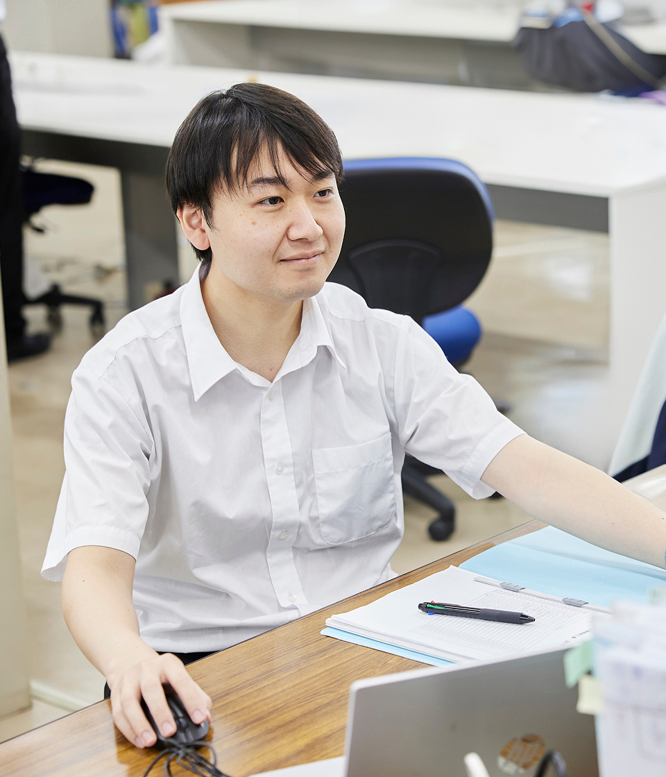 設備関連業務の設計室に所属し、大小さまざまな規模のプラント設計を行っています。お客さまの要望や建物の条件など多岐にわたる条件の中で、最適な機器の選定や配管ルートを組み立てていく過程が非常に楽しく、やりがいを感じています。