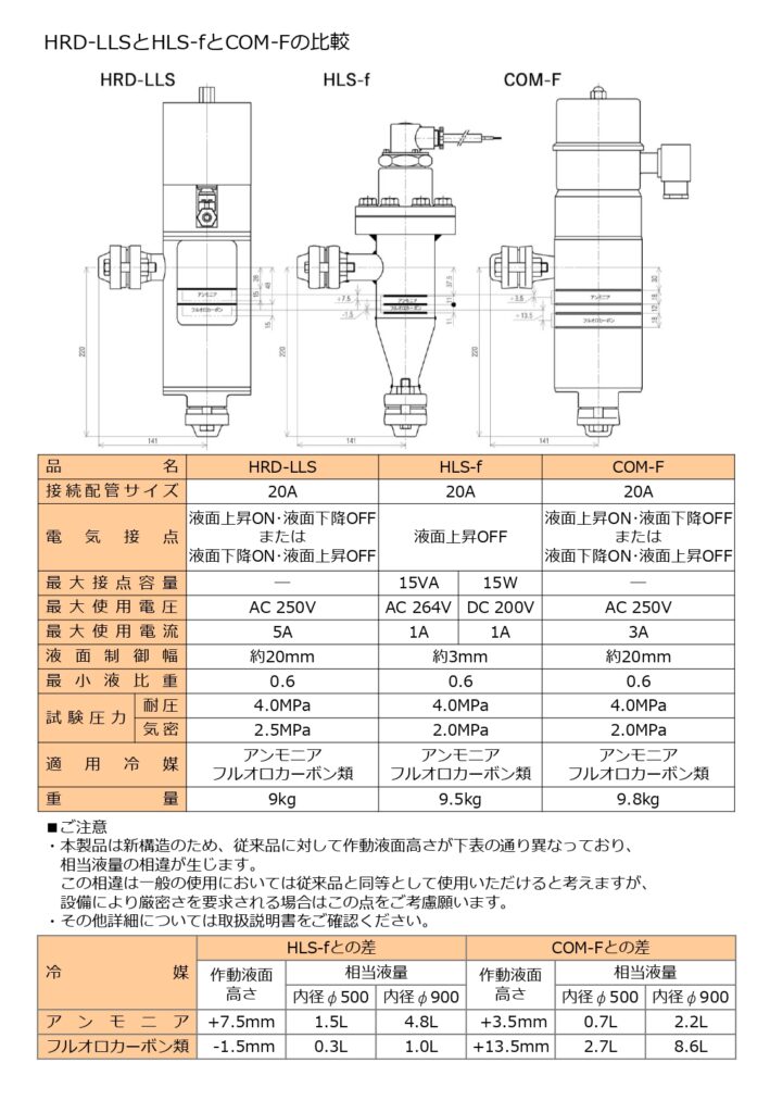 ●前モデルHLS-f および熊谷製作所COM-F取付互換性は配管・フランジの変更なしで取付が可能