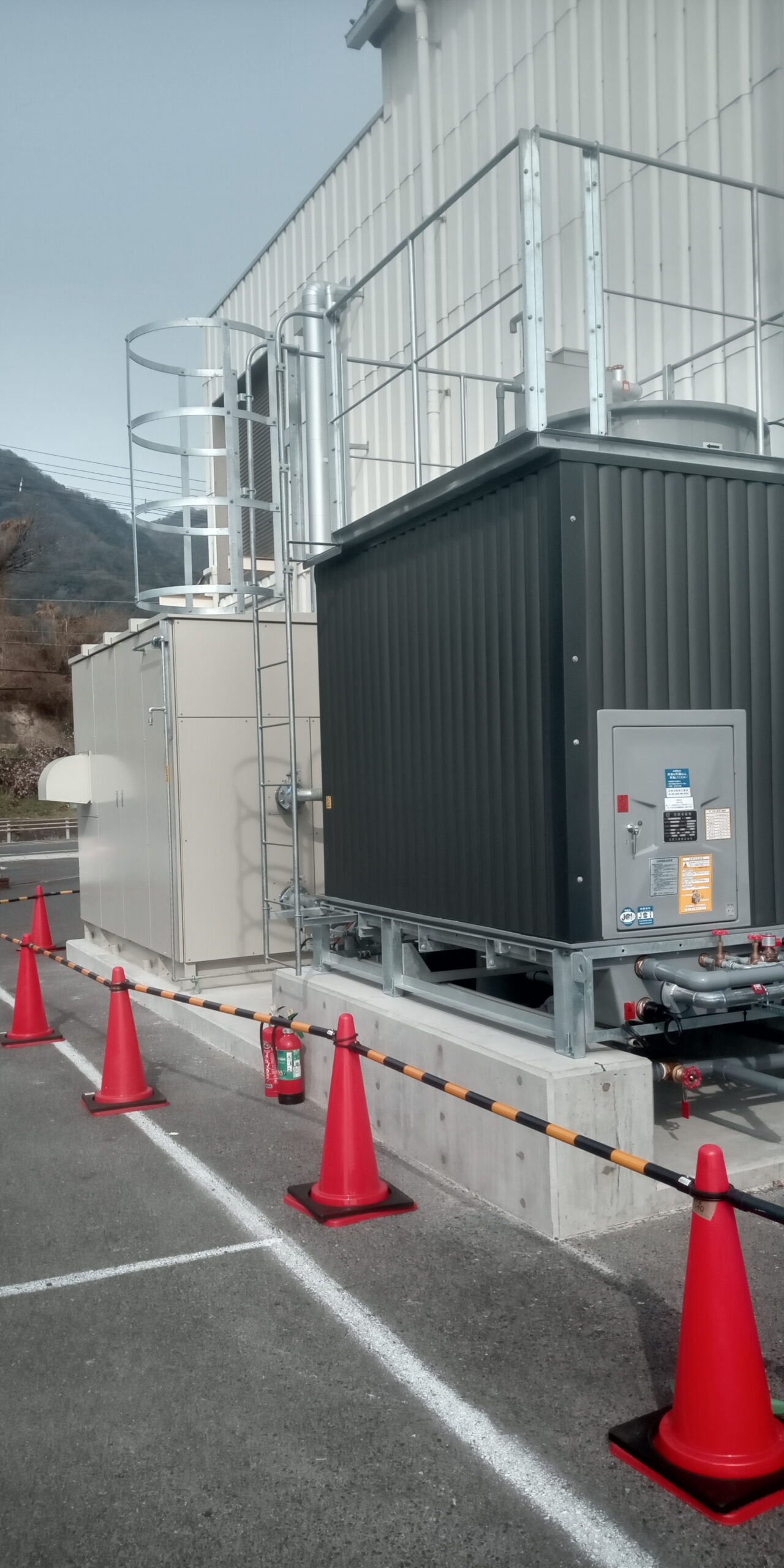 広島県三原市にある三原工場は冷凍牡蠣フライや冷凍つぶ牡蠣を製造する主力拠点で、原料牡蠣保管庫の冷却設備、